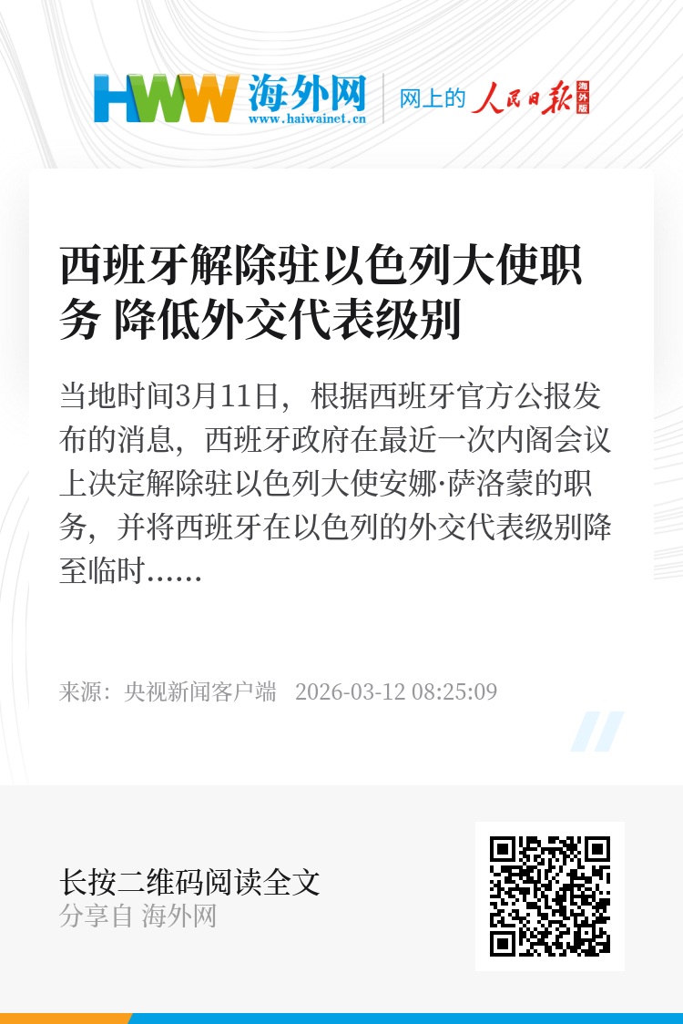 根据外交惯例,如两国未来希望恢复大使级外交关系,西班牙需重新任命驻以色列大使,并获得以色列政府的外交承认。(总台记者 廖军华)