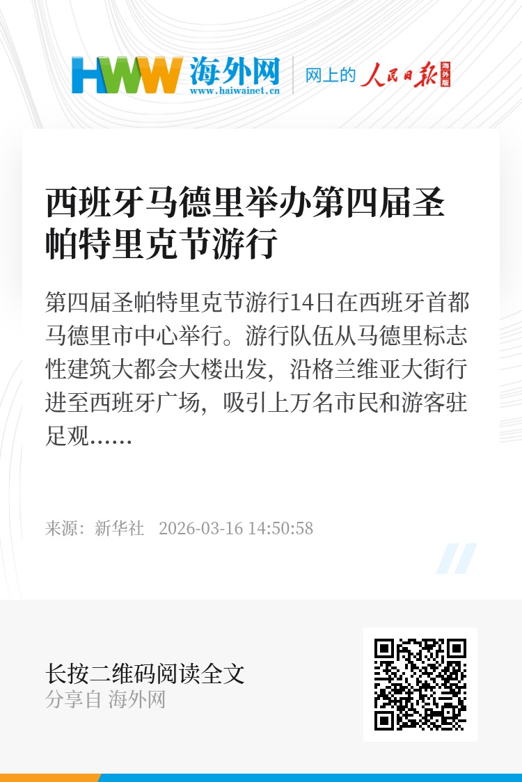 第四届圣帕特里克节游行14日在西班牙首都马德里市中心举行。游行队伍从马德里标志性建筑大都会大楼出发,沿格兰维亚大街行进至西班牙广场,吸引上万名市民和游客驻足观看。