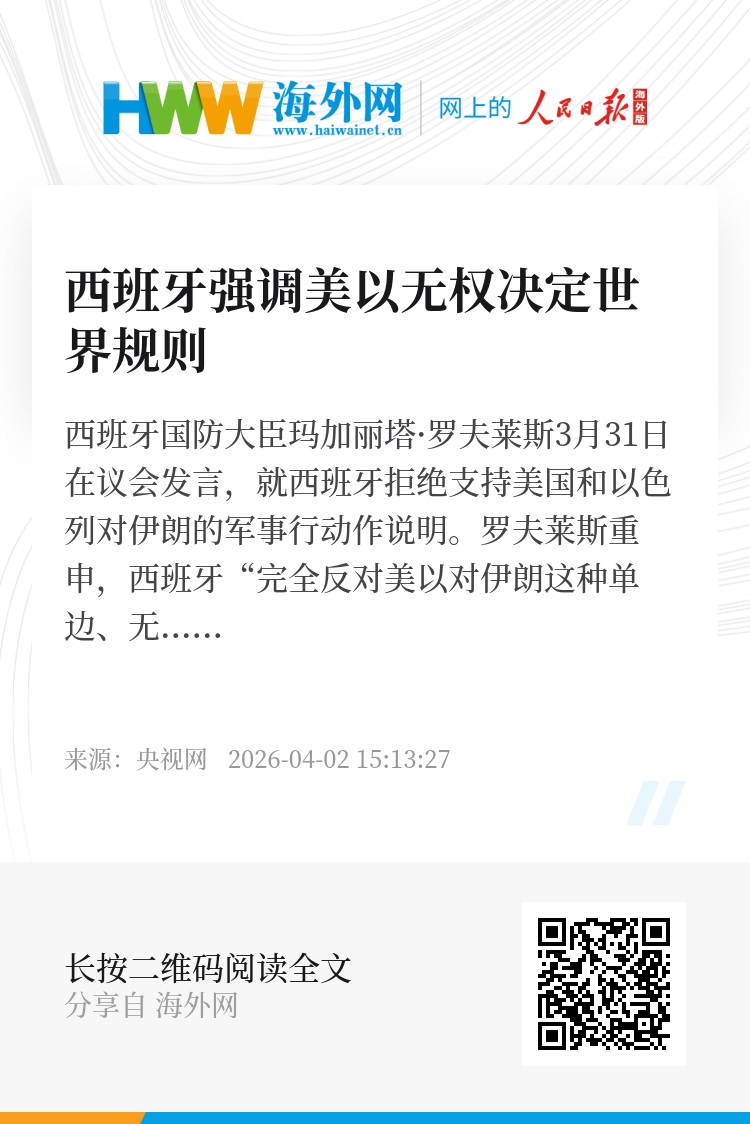 罗夫莱斯指出,西班牙无法接受“两个国家把全世界拖入他们的战争之中”,“美国和以色列不能不顾及任何人就擅自决定世界上应该有什么样的和平或适用什么样的规则。”